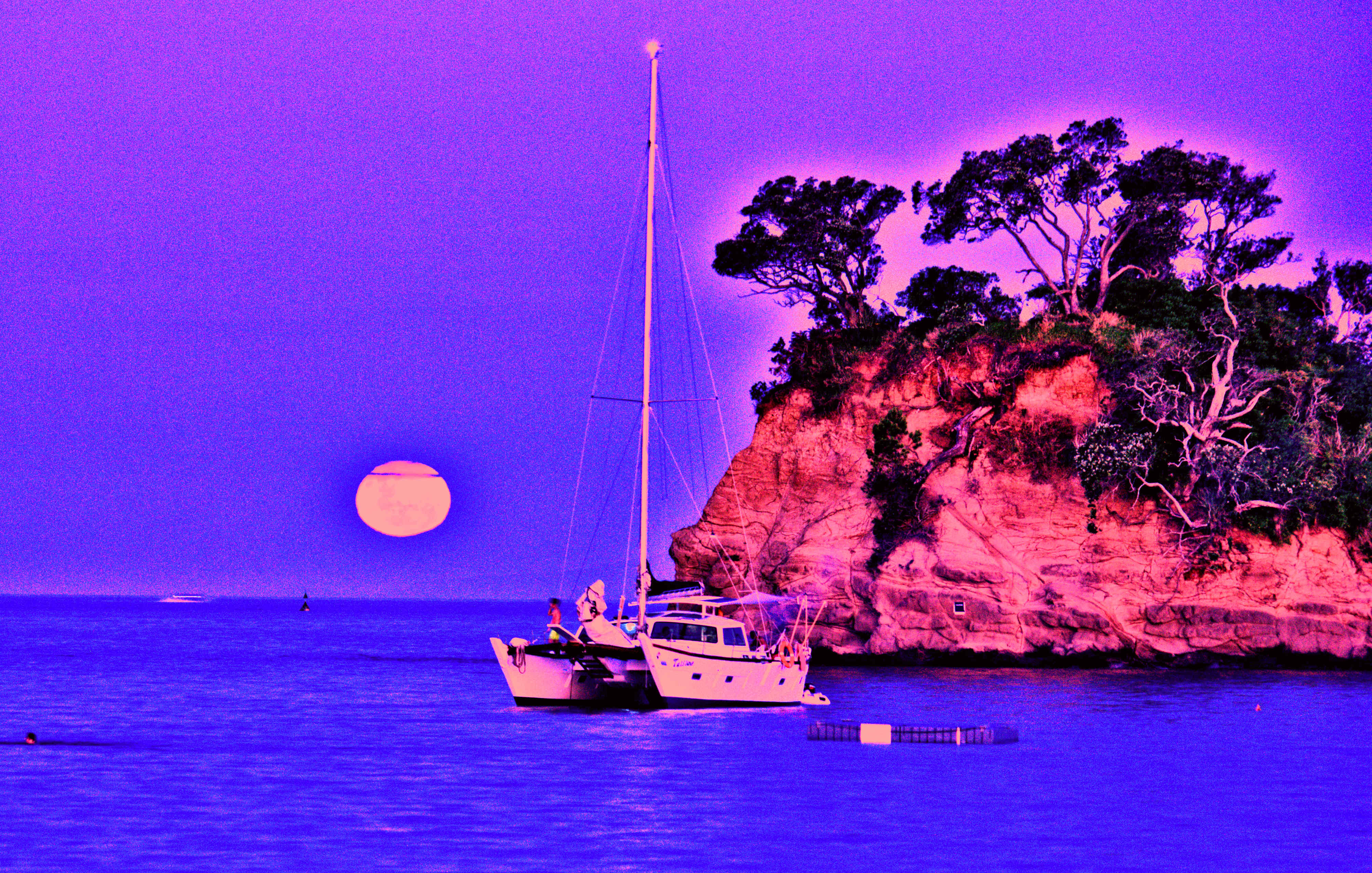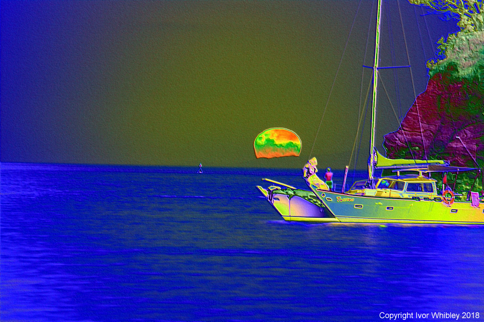 In this example I have used HDR (High Dynamics Range) to accentuate the island and yacht structure. The sea and sky are now purple.